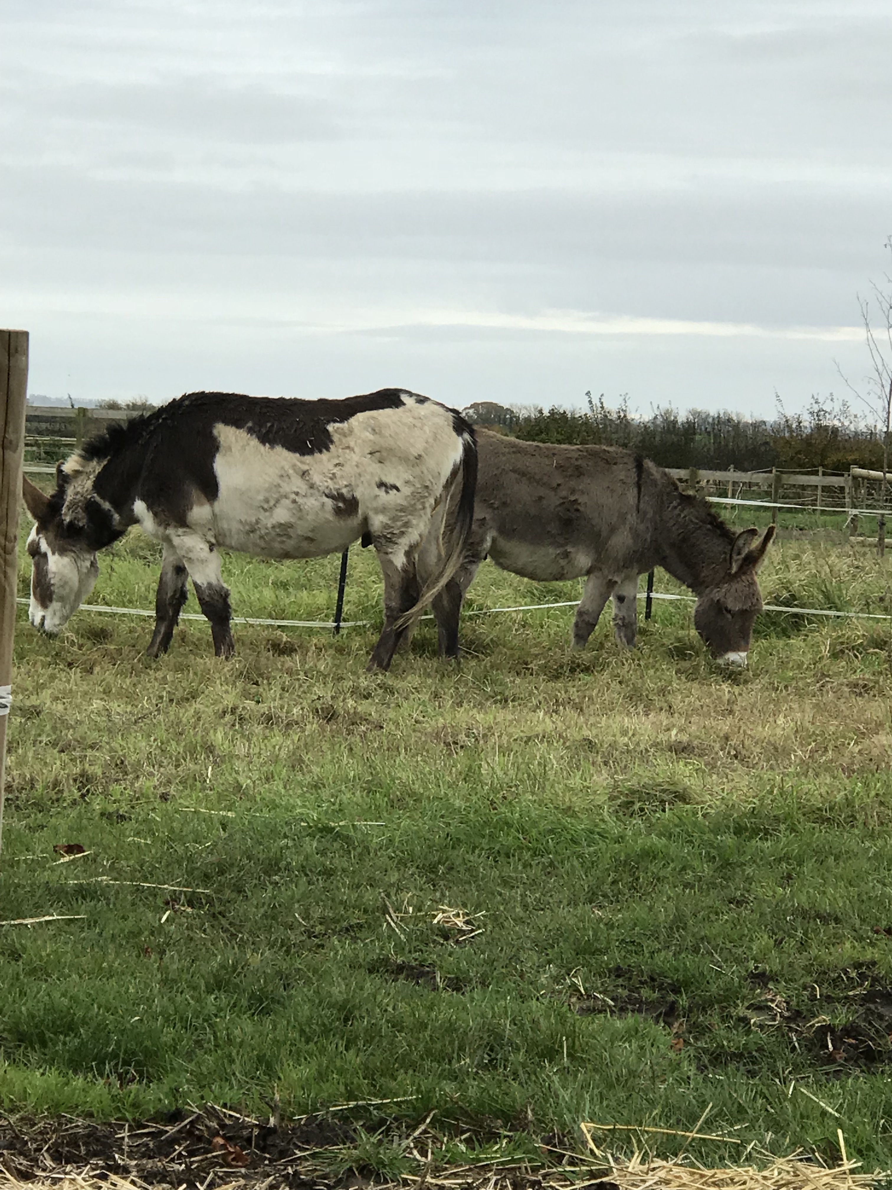 So I’ve been out here for about an hour waiting for our donkeys, who are busy chomping on the grass, to process it and for it to appear the other end.