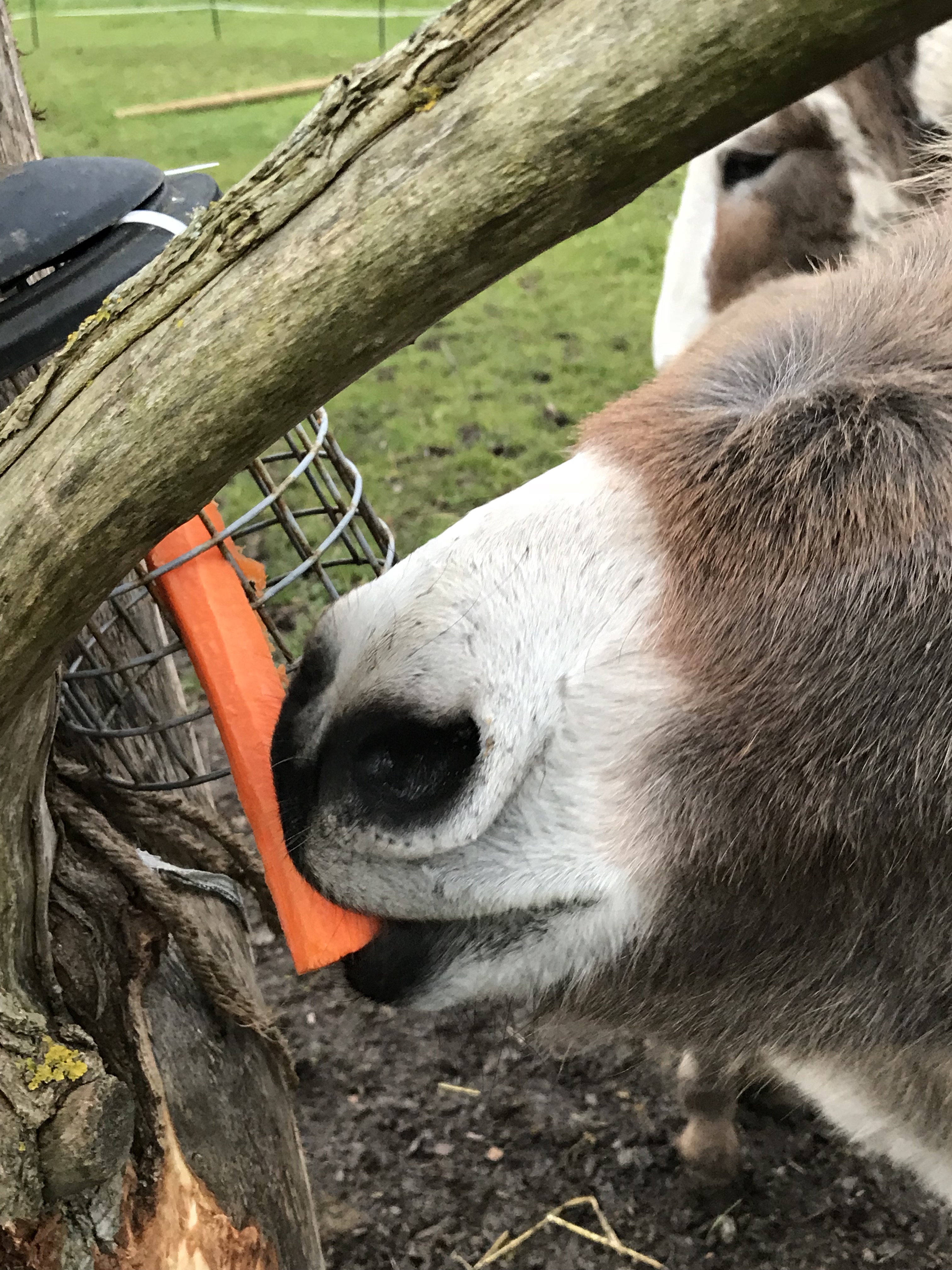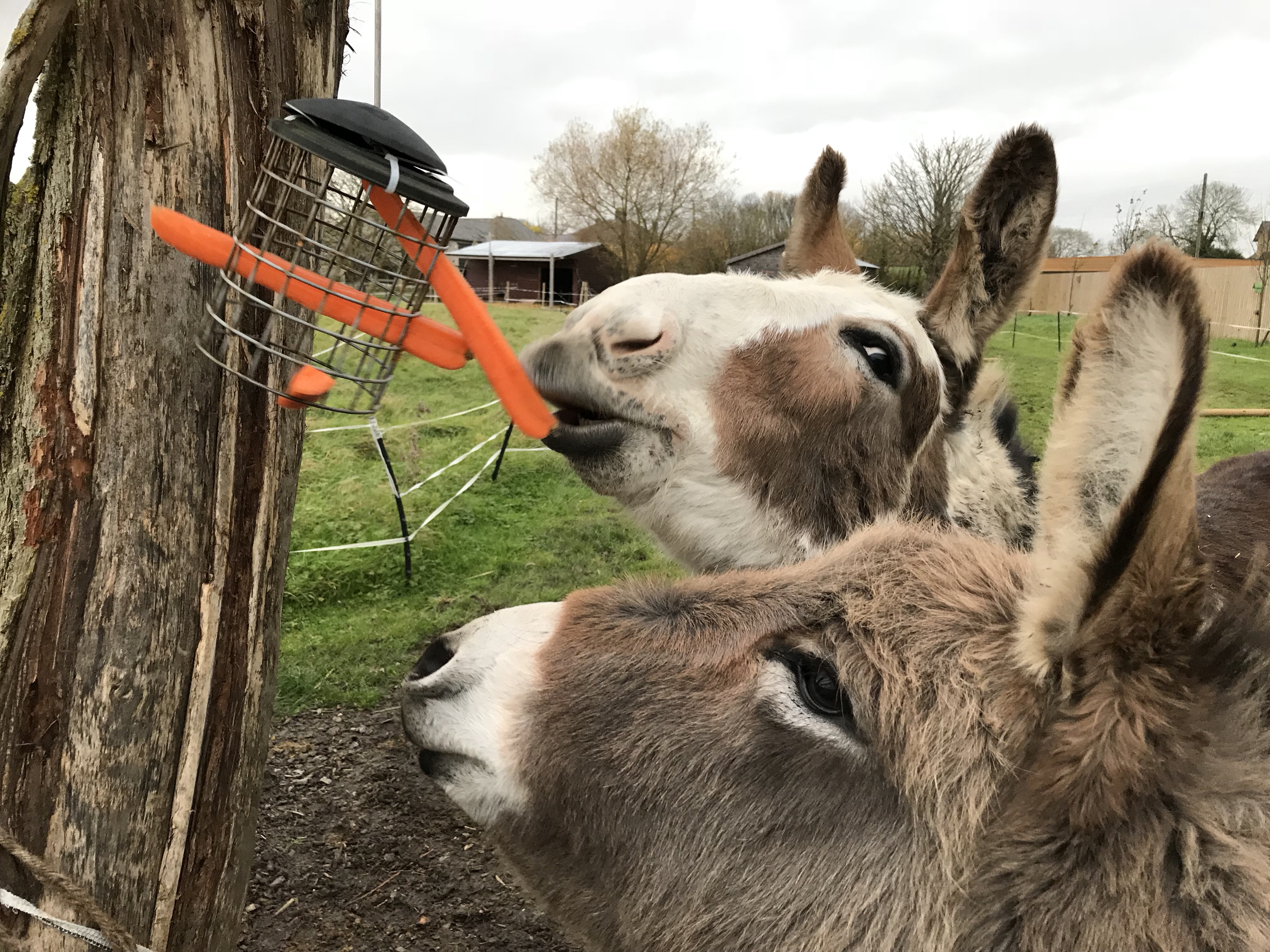 Today I decided to recycle a broken bird feeder into something for our donkeys as an experiment for their enrichment and stimulation. As comical as ever, such clever boys …….